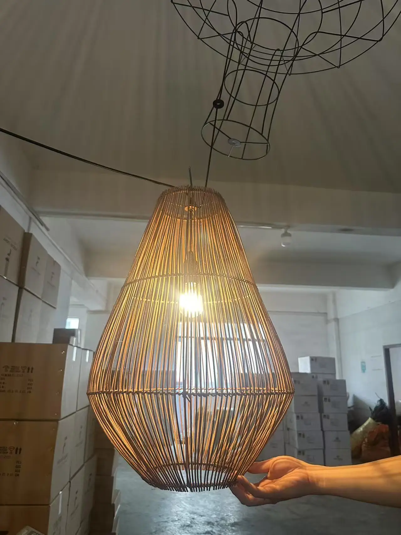 Candelabro de mimbre moderno hecho a mano, lámpara colgante de tejido de bambú para el hogar, decoración de restaurante, lámpara colgante de techo fácil